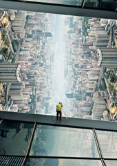 Die Motive unseres BDVI-Kalenders 2021 scheinen mit der Realität nur noch wenig zu tun zu haben. Irritierende Ansichten, in denen Geometrie und Perspektive eigenen Gesetzen folgen, verleihen dem Wahrgenommenen eine neue Intensität. Vermeintlich vertraute Szenerien entziehen sich jeder Logik, überraschende Wendungen und Spiegelungen heben alle Orientierung auf. Ein Horizont zieht sich gleich einer Schneise durch die Skyline einer großen Stadt, eine verrückte Brücke verbindet ihre Ufer wohl jenseits der Vorstellungskraft miteinander und vielfach kann man sich nicht sicher sein, wo eigentlich oben und unten ist.